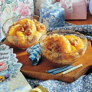 Meanwhile, drain the peaches and reserve juice in a small saucepan. Stir in the sugar and cornstarch until smooth. Bring to a boil; cook and stir for 2 minutes or until thickened. Remove from the heat; stir in peaches.