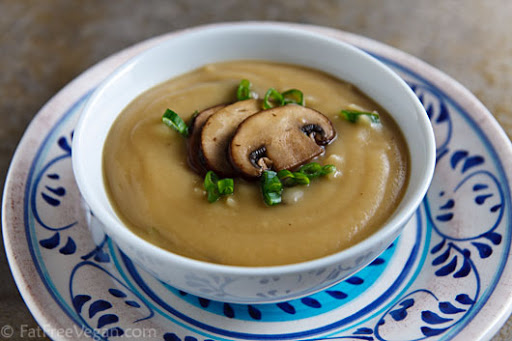 For a cream of mushroom-type soup, add the mushrooms with the celery and cook until softened. Blend with the other vegetables as directed.