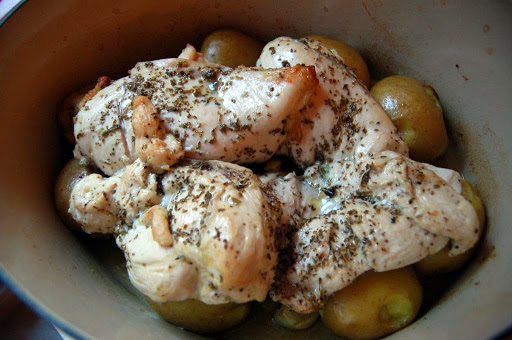 Moist chicken with a hint of lemon and lots of oregano. I used Wild Greek Oregano and the flavor was delicious.