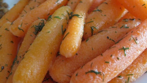 Place carrots in a saucepan with enough water to cover. Bring to a boil, and cook 10 minutes, until tender. Remove from heat, and drain. Gently toss with margarine, dill, and lemon juice. Season with salt and pepper.