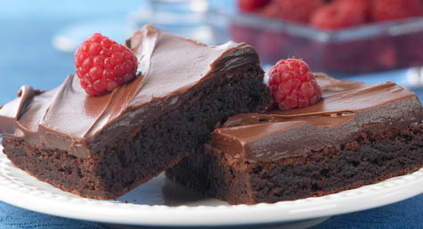 Spread Frosting evenly over brownies. Cut into squares. Garnish each brownie with a fresh raspberry, if desired.