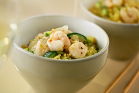 Spicy Shrimp Over Preserved Lemon Pilaf