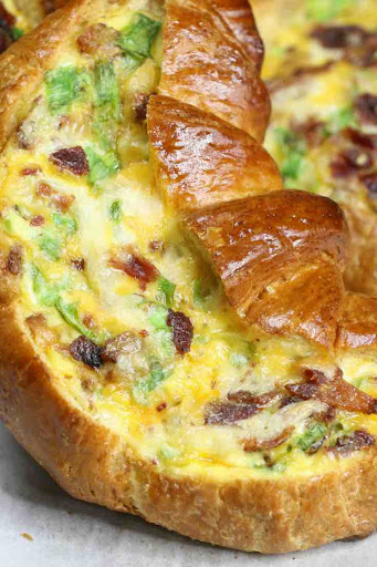 Omelet Breakfast Croissant Boats are croissants stuffed with eggs, cooked bacon and cheese - such a yummy way to start your day.