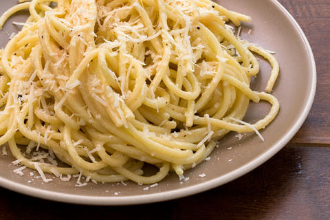 High-quality ingredients are essential in this dish, most importantly, imported Pecorino Romano—not the bland domestic cheese labeled “Romano.” Use the small holes on a box grater to grate the cheese finely and the large holes to grate it coarsely. Alternatively, a food processor may be used to grate it finely: Cut the Pecorino into 2-inch pieces and process until finely ground, about 45 seconds. For a slightly less rich dish, substitute half-and-half for the heavy cream. Do not adjust the amount of water for cooking the pasta. Stir the pasta frequently while cooking so that it doesn’t stick to the pot. Letting the dish rest briefly before serving allows the flavors to develop and the sauce to thicken