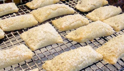 Place a level teaspoonful of filling in the center of each square. Moisten edges with water; fold in half and seal with a fork. Place 1 in. apart on ungreased baking sheets. Brush with egg.