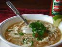Ladle into bowls and serve with remaining cheese, chopped green onions, and sour cream. Salt to taste.