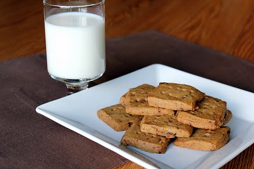 3. Add the flour and salt, and mix just until dough holds together. Add chocolate chips and nuts (optional)