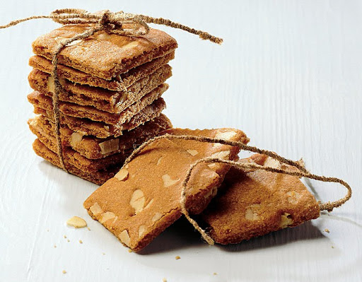 Slide wax paper onto a baking sheet (preferably rimless). Bake, turning once halfway through, until edges are lightly golden, about 20 minutes. Remove pan from oven and, on baking sheet, cut dough into 2-inch squares. Return to oven and bake until edges of cookies are lightly golden, about 5 minutes more.