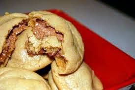 Take small cookie scoop of dough & flatten. Place candy bar in the middle & form dough around it.