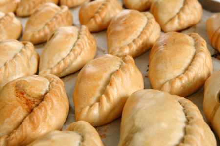 The Cornish pasty evolved for the Cornish tin miners who, unable to return to the surface at lunchtime, received a hearty, easy-to-hold-and-eat mal for sustenance. With their hands often dirty from a morning’s work, they could hold the pasty by its thick pastry crust without contaminating the contents. The crust also acted as insulation, keeping the lunch warm for several hours. St. Prian is the patron saint o tin miners and of Cornwall. His feast day is March 5.
