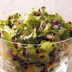 Sugared almonds give Dolores Lueken's delicious salad an over-the-top kick that will have guests coming back for seconds. She sent the healthy and flavorful salad from her kitchen in Ferdinand, Indiana.
