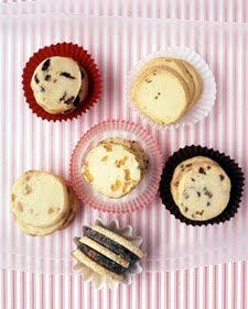 Preheat oven to 350 degrees. Unwrap logs; with a serrated knife, slice dough 3/8 inch thick (if dough crumbles, leave at room temperature 5 to 10 minutes). Arrange slices, about 1 inch apart, on baking sheets.