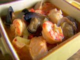 Add the clams and crab to the cooking liquid. Add the shrimp. Simmer gently until the fish and shrimp are just cooked through. Season the soup, to taste, with more salt and red pepper flakes.Add parsley