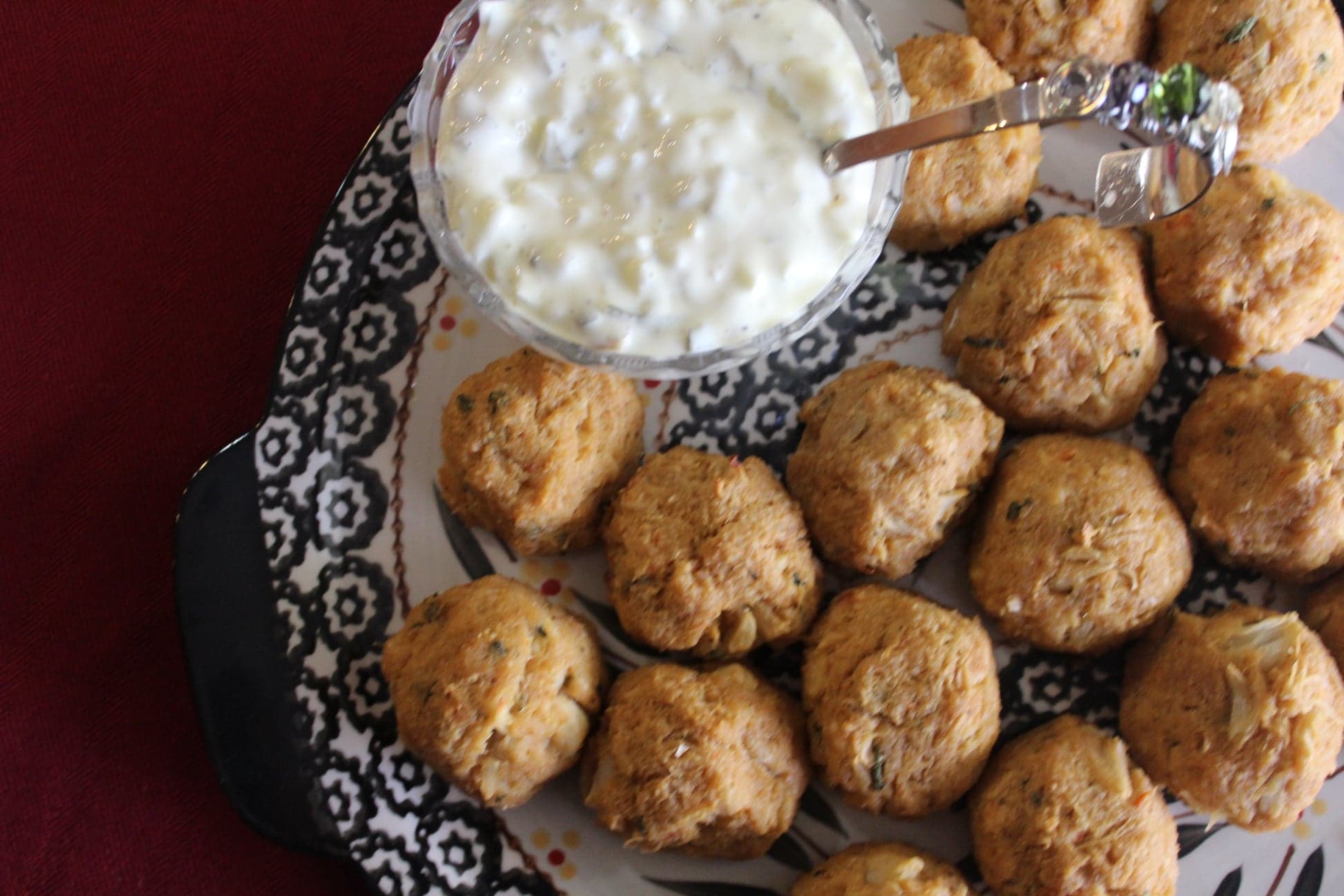 Pour egg mixture over the crab meat and crackers and gently mix careful not to break up large lumps of crab meat. Mold into golf ball sized balls and place on a cookie sheet.