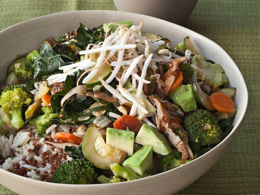 Quinoa and Brown Rice Bowl with Vegetables and Tahini