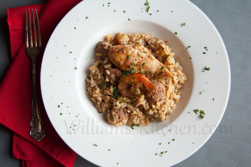 - 1 1/2 pounds andouille sausage, cut into 1/2-inch cubes