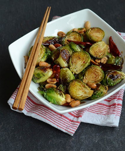 Return the brussels sprouts to the pan, add the peanuts, and pour in the sauce. Stir just until the brussels sprouts are well coated, about 30 to 60 seconds. Quickly transfer to a large bowl or plate and serve.