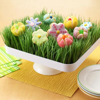- For variety, use portion of dough to make cut-out flower cookies; decorate as desired.
