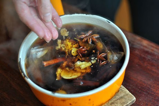 1. In a large saucepan, combine water, sugar, ginger, cloves, cinnamon, and star anise. Bring to boiling, stirring to dissolve sugar. Boil for 1 minute. Remove from heat and strain. Return mixture to saucepan.