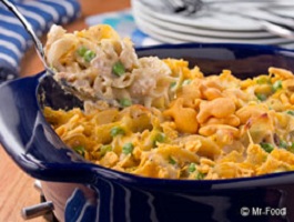 •Bake 25 minutes. Coarsely crumble half of crackers; sprinkle around edges of casserole. Place remaining whole crackers in center. Bake an additional 5 minutes or until casserole is thoroughly heated.