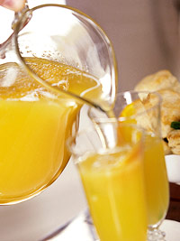 Pour orange juice and apricot nectar over ice in a large (11-cup) glass pitcher or punch bowl. Add champagne, wine, or sparkling water, stirring gently. Place a Citrus Ice Cube in each champagne glass or punch cup. Pour or ladle over ice. Makes about 20 1/2-cup servings.