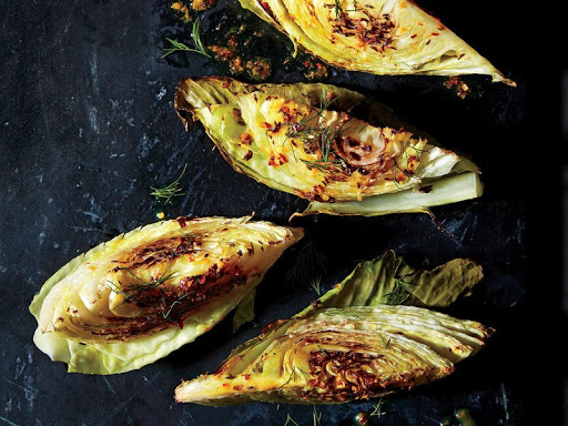 Arrange cabbage wedges, cut sides up, on a baking sheet. Spread half of butter mixture evenly over cut sides of cabbage. Bake at 350°F for 25 minutes. Remove pan from oven; spread remaining half of butter mixture over wedges. Bake at 350°F for 20 minutes or until tender. Sprinkle with remaining 1/4 teaspoon salt and dill. Serve immediately.