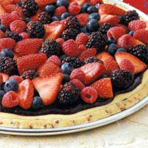 Spread berry mixture over the cream cheese layer. Arrange fresh fruit on top. Refrigerate for at least 2 hours before slicing.