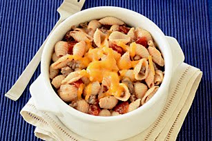ADD Cheese Sauce; stir until blended. Top with shredded cheese.