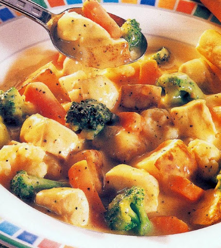 - 1 (1 lb. 10 oz.) pkg. frozen potato, carrots, broccoli and cauliflower with lemon-pepper seasing meal starter