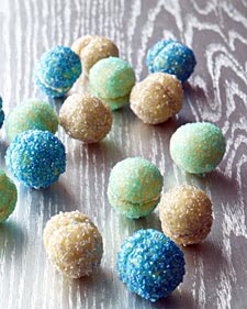 Preheat oven to 350 degrees. Beat butter, confectioners' sugar, and salt with an electric mixer on medium-high speed until pale and fluffy, 3 to 4 minutes, scraping down side of bowl as necessary. beat in vanilla. Reduce speed to low; add flour, and mix just until combined. Shape into 3/4-inch balls (chill dough if too sticky). Place sanding sugar in shallow bowls. Roll each ball in sanding sugar, and place on parchment-lined baking sheets, spacing 1 inch apart.