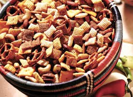 Oven Directions Heat oven to 250°F. In large bowl, mix cereals, nuts, pretzels and crackers; set aside. In ungreased large roasting pan, melt butter in oven. Stir in Worcestershire sauce, seasoned salt and pepper sauce. Gradually stir in cereal mixture until evenly coated. Bake 1 hour, stirring every 15 minutes. Spread on paper towels to cool, about 15 minutes. Store in airtight container