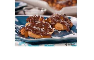 In another small saucepan over low heat, melt chocolate chips with shortening 5 to 7 minutes, or until smooth, stirring constantly. Drizzle chocolate over caramel-covered nuts, evenly sprinkle with sea salt, and let stand until firm.