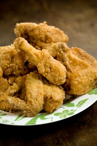 In a medium size bowl, beat the eggs. Add enough hot sauce so the egg mixture is bright orange (about 1 cup). Season the chicken with the House Seasoning. Dip the seasoned chicken in the egg, and then coat well in the flour. Place the chicken in the preheated oil and fry the chicken in the oil until brown and crisp. Dark meat takes longer than white meat. Approximate cooking time is 13 to 14 minutes for dark meat and 8 to 10 minutes for white meat.