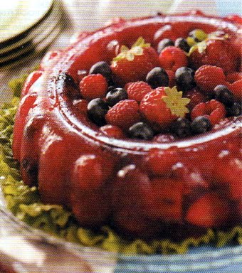 Fold in berries. Pour into 6-cup mold coated with cooking spray. Refrigerate for 4 hours or until set. Unmold onto platter; fill center with additional berries if desired.
