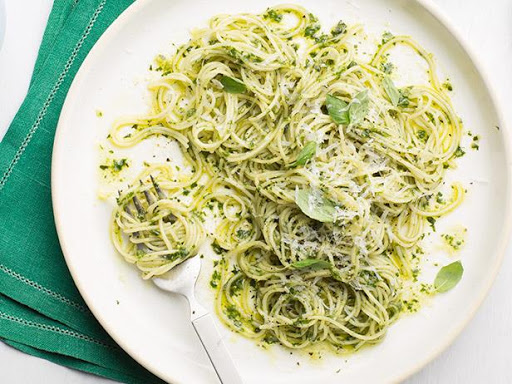 Cook the pasta in the boiling, salted water until al dente, about 3 minutes. Drain and transfer to a large bowl. Add the pesto and toss. Taste for salt and pepper, and add a drizzle of oil, if you like.