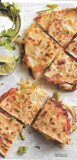 Heat a very large skillet or griddle over medium heat. Cook quesadillas for 4 to 5 minutes per side or until cheese melts and tortillas are lightly browned. Cut each quesadilla into 4 wedges. Serve warm and, if desired, with sour cream, additional cilantro and lime wedges.
