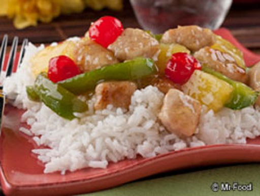 This looks great topping a large plate piled high with steaming white rice and garnished with maraschino cherries.