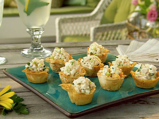 I don't use the phyllo cups and don't chop the shrimp so finely and add a pinch of cayenne. I serve the salad on lettuce as an entree or as a sandwich.