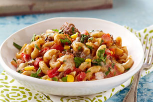 STIR in water, salsa and chili powder; bring to boil. Stir in macaroni; cover. Simmer on medium-low heat 10 to 12 min. or until macaroni is tender, stirring occasionally and adding corn for the last 5 min.