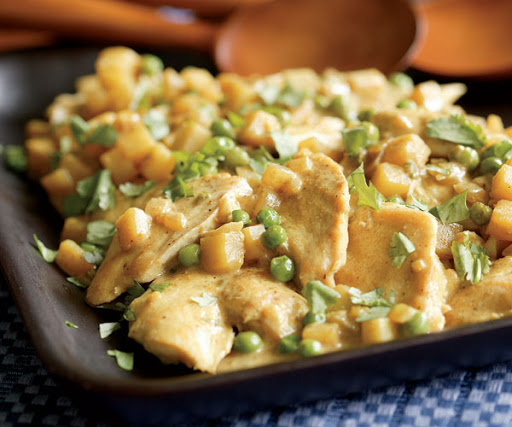 Chicken with Potatoes, Peas & Coconut-Curry Sauce