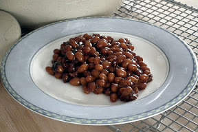 * Add sauce to tender beans, stir then place in bean pot, layering with onion.