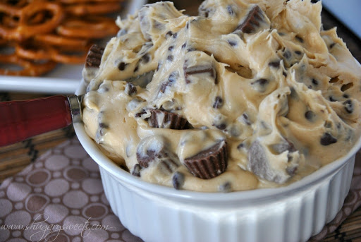 2.In a large mixing bowl, beat cream cheese with powdered sugar and peanut butter until creamy (about 3-4 minutes, don't skimp on the beating time). On low, add in brown sugar mixture (that has cooled to room temperature). Mix until combined. Fold in mini chocolate chips and mini Reese's cups. Serve immediately or store in refrigerator until ready to serve. Enjoy with pretzels, animal cracker and graham sticks.