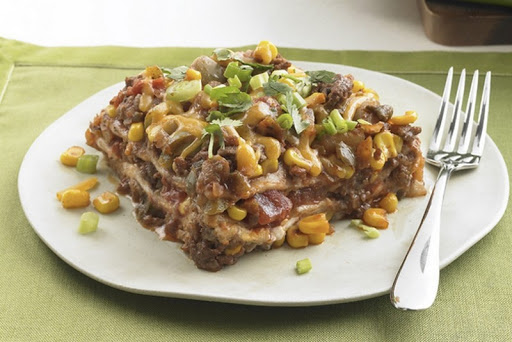 What's not to like about this cheesy layered tortilla dish with ground beef and salsa?