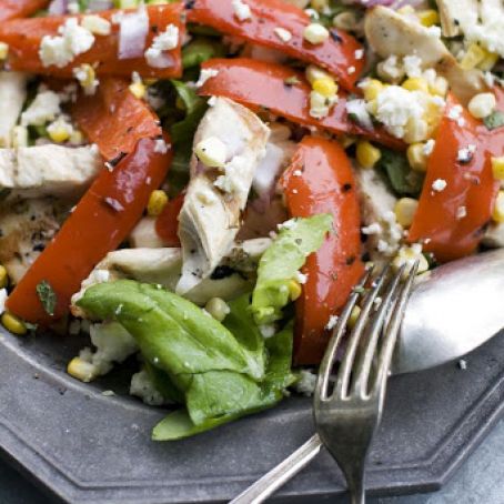 The chicken, for example, is easily replaced with thinly sliced steak. Or turkey tenderloin. Or small cubes of lamb. Or salmon. Don't have Boston lettuce? Use anything frilly and green. Or even something not so frilly. Heck, use a bed of finely chopped steamed and cooled broccoli if that's what you have. And substitute at will for the veggies I call for. I like them grilled, but don't feel compelled. Want something bready? Grill some and add as crouton. My only request? Don't use bottled dressing. Make it. Homemade vinaigrette tastes better, is better for you, and makes you a better person. And use your hands when dressing the greens with it. You'll get much better coverage, making for a much better salad.