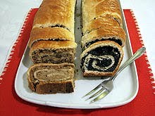 Sift together dry ingredients and mix in remaining ingredients. Knead thoroughly. May have to add more flour to make dough smooth and silky. Cover and let rise 2 hours (Place in warm oven. Turn off oven). Punch dough down and cut into four pieces. Roll out as thin as pie dough and proceed as follows: Brush dough with melted butter or margarine. Spread 1/4 of nuts on dough and roll up. Fold in the ends. Put rolls on jelly roll pan. Cover with cloth and let rise for 30 minutes. Bake at 350 degrees for 30 minutes or until golden on top.
