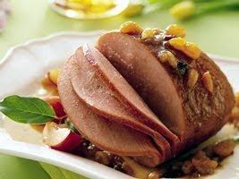 1. Place ham in 3 1/2- to 4-quart slow cooker. Sprinkle with pepper. Mix remaining ingredients; pour over ham.