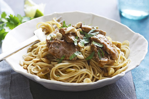 We used Italian pasta in this Asian-inspired noodle bowl to keep things simple but you could use rice noodles or udon noodles instead. Combined with stir-fried pork tenderloin, green onions, peanuts and cilantro, the noodles create a quick and easy Asian meal.