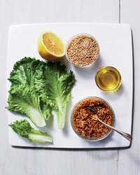 Preheat the oven to 375°. Spread the benne seeds on a baking sheet and bake for 45 minutes, stirring once, until browned and fragrant. Transfer 1/2 cup of the seeds to a mini food processor and let cool; reserve the remaining 1 tablespoon of seeds for garnish. Add the lemon zest and juice and 1/4 cup of cold water and puree until a paste forms. With the machine on, drizzle in 1/2 cup of the olive oil. Season the dressing with salt and white pepper.