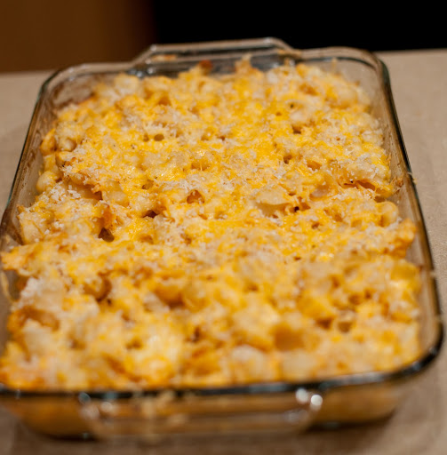 Now sprinkle with bread crumbs and extra cheese. I think seasoned croutons or crushed Ritz crackers would be even better than the Panko.