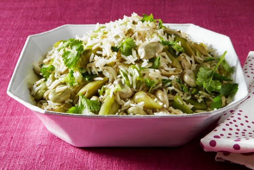 Meanwhile, heat 2 tablespoons oil in another saucepan set over medium-low heat. Add onions and cook until soft, 3 minutes. Add beans and mix well. Add just enough water to cover, and simmer until beans are tender, about 10 minutes or according to package directions. Add bean mixture to rice and stir to combine.